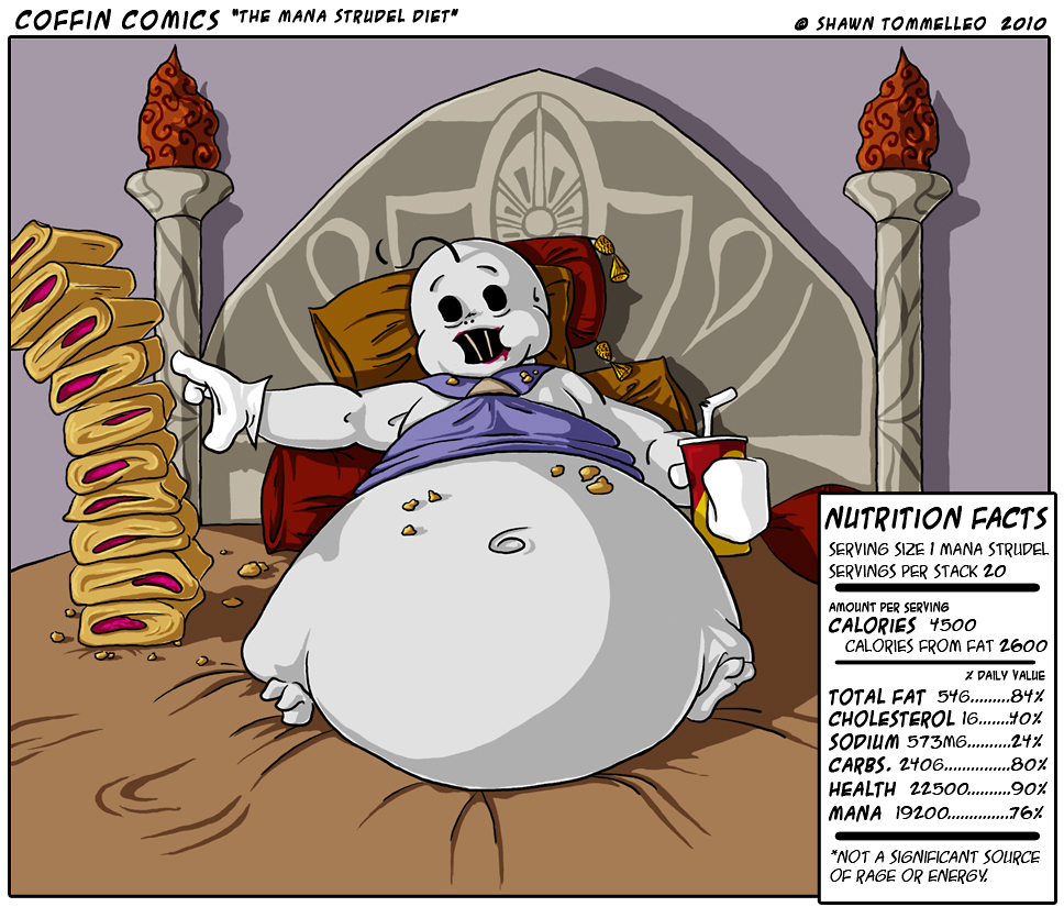 There is a growing problem facing all of the classes of WoW; Mages, Warlocks, Priests, etc… I’m talking about the over indulgence of conjured foods! Be it your Fish Feast, your Firecracker Salmon, or your Conjured Mana Strudels. With mana and health pools growing steadily, the need for more conjured foods has reflected this demand. Sometimes as much as an entire stack is consumed during a raid. As a result, the rate of overweight toons on all realms is staggering!